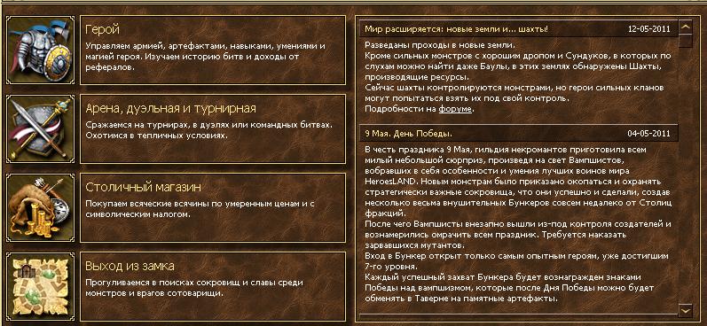 - 1 - В панели героя можно зайти в свой инвентарь, так же подобрать навыки и умения, магию, посмотреть активные и завершенные квестовые задания, пригласить рефералов.