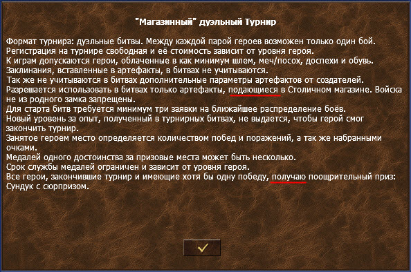 моя ошибка..извиняюсь, там всё нормально.seryivyp писал(а):при попытки сделать ставку на тотализаторе героем ниже 7-ого уровня - выдаётся ссобщение с пропущенном словом "уровень".