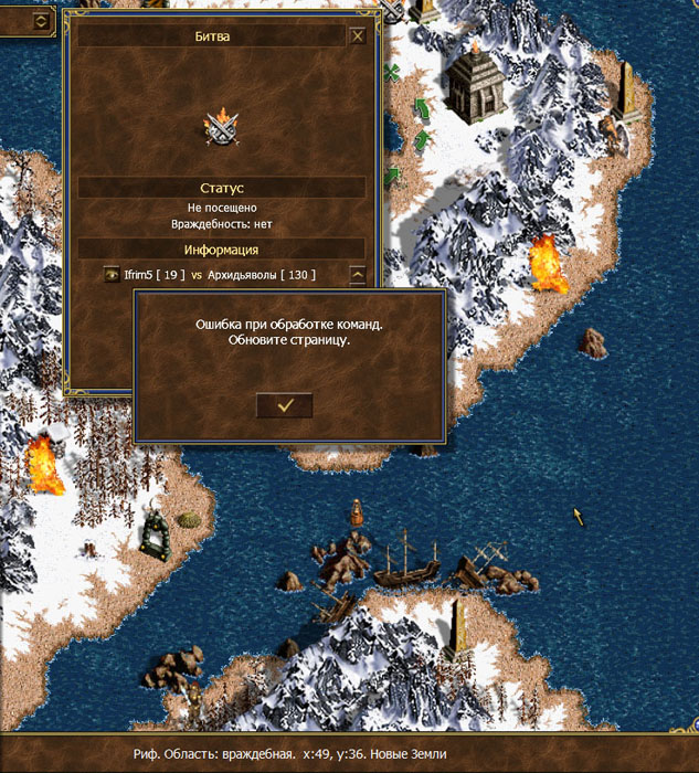 При нажатии правой кнопкой на объект (в том случае на текущую битву на карте) вылетает окно с ошибкой.