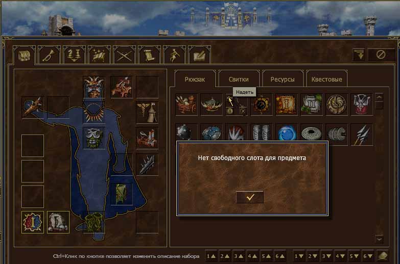 лук не одевается, хотя три пустых места есть, стоит только освободить нижние слоты, только тогда берется. Это крайне не удобно бывает, особенно если взята двойная мана, а медальки внизу, то при перемене места медальке, мана ведь сбросится.
