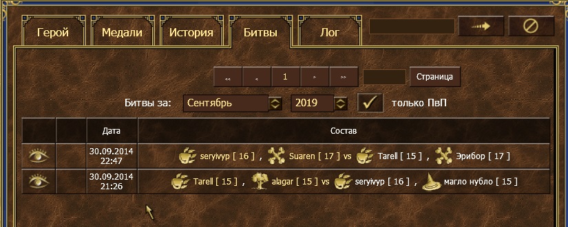 Просмотр истории боев