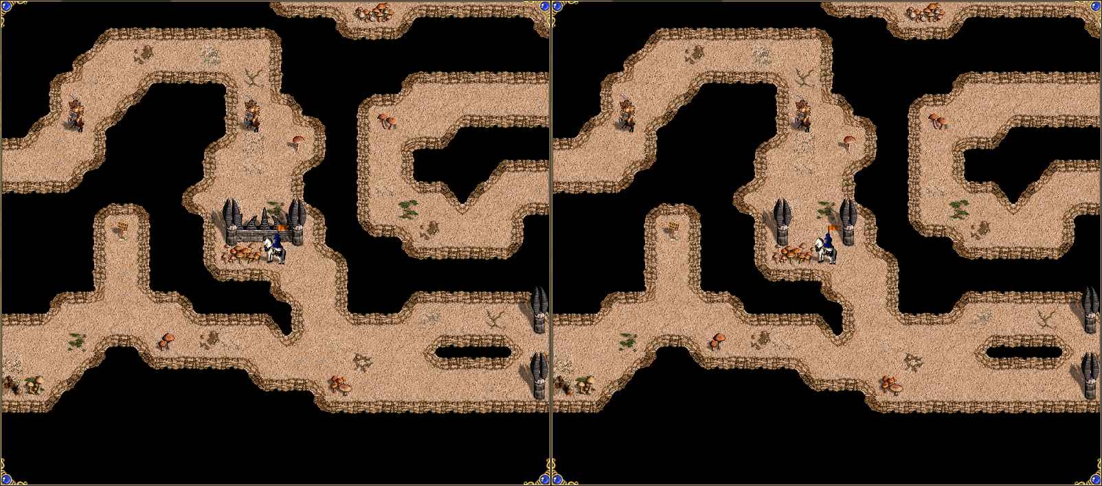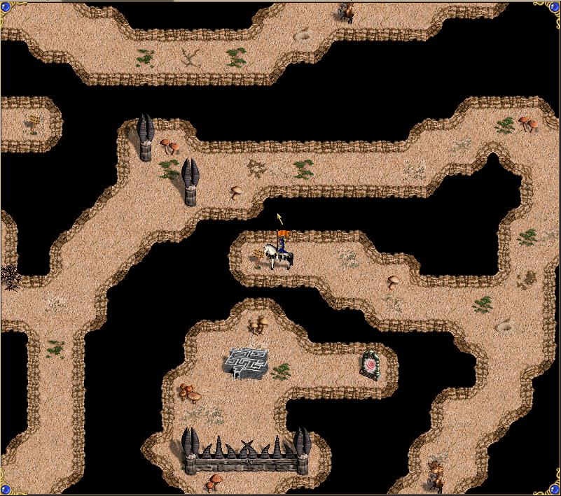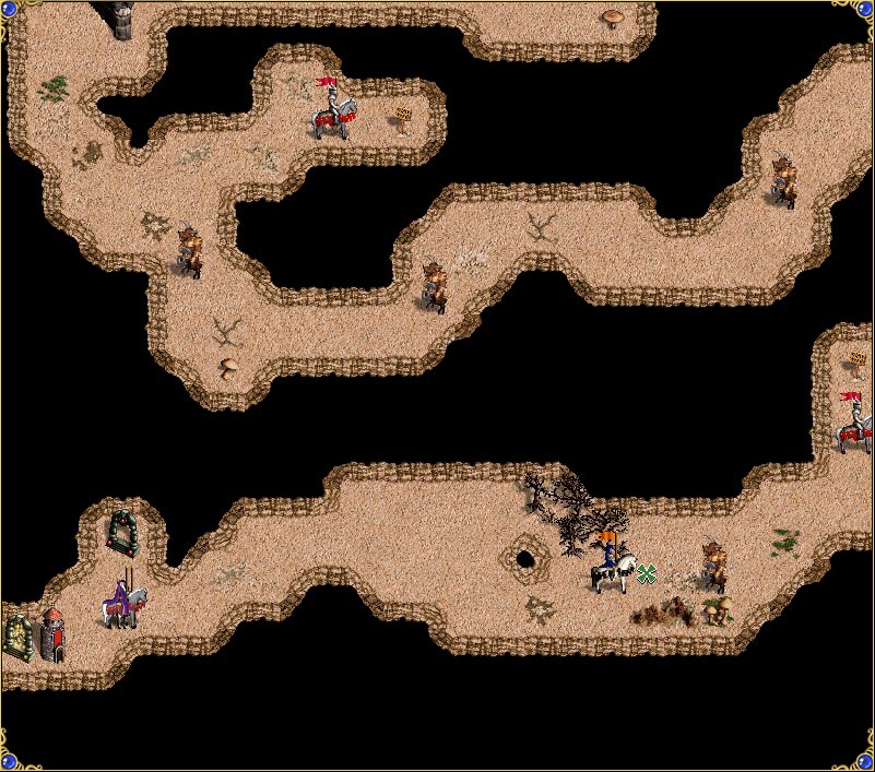 Герои появляются в юго-западной части карты. Здесь же и расположен выход, отгороженный красным стражем границы, ключ от которого добывается в конце подземелья, в жилище минотавров. По пути будут встречаться динамические армии минотавров-королей и вольных Оверлордов, охраняющих таблички. Таблички либо открывают находящиеся рядом ворота, открывая путь дальше, либо телепортируют в следующий участок подземелья. Важно после боя с вольником не забыть посетить табличку перед тем, как идти дальше. Герои могут разделить роли так, что кто-то будет бить монстров, а кто-то вольных героев, но желательно, чтобы каждый мог справиться и с монстрами, и с вольными героями. В случае поражения герой переносится в начало карты.