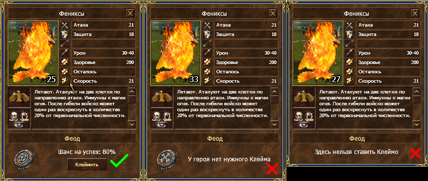 С заклеймлённых мобов со 100% вероятностью падает 1 ихор. Чтобы попытаться заклеймить моба, нужно нажать правой кнопкой или ctrl+кликнуть по нему, затем нажать "Клеймить". Каждая попытка клеймления тратит 1 прочность клейма. У клейм крепостей прочность равна 100, починить их нельзя, при достижении 0 клеймо пропадает и нужно покупать новое. После успешного клеймления кнопка "Клеймить" изменится на надпись "Клеймил: <Ник героя>". Какой именно герой заклеймил ни на что не влияет, клеймить может один герой, а бить мобов другой. Клеймо на мобе не исчезнет, пока моб не будет убит. Стоит помнить, что если моб слишком слабый и с него не падает золото и дроп, то и ихор с него не упадёт.