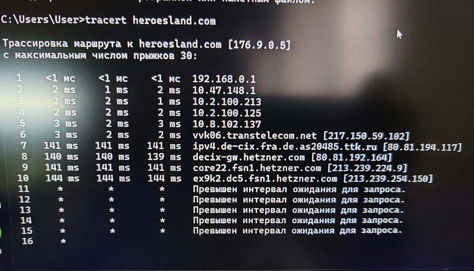 tracert heroesland.com