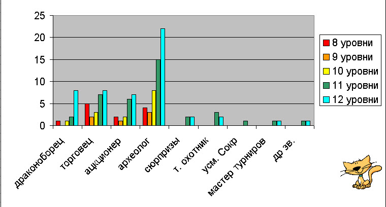 Взяла рейтинги дуэлянотов… 402 героя с 8-12 уровень с учетом даты появления медалей.