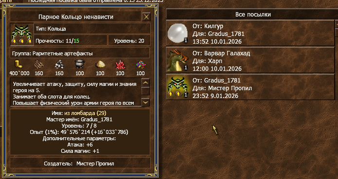 Начинаем подозревать каждого, кто высылает дорогие посылки? Недавно Форест Фараону высылал - в блок обоих.артём60000 писал(а): ↑31 мар 2026, 23:38Пусть заодно объяснят, почему Пропилу в кольцо камни покупал градус, вставлял и обратно отослал, между прочим три камня 10 лвла по 18кк каждый. Извиняюсь что вмешался так рано, но потом забуду.