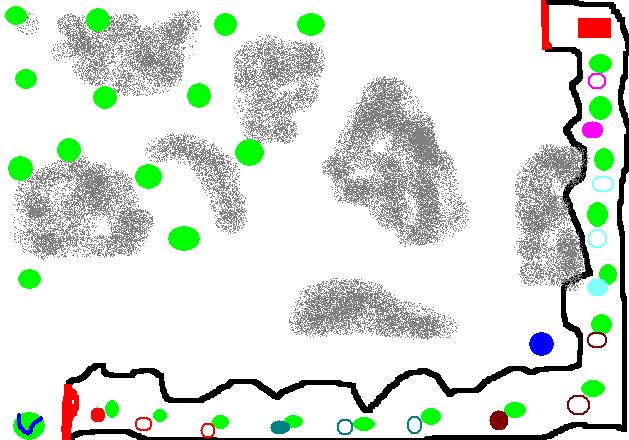 Итак, по новым правилам все герои появляются рядом с зеленым кружочком с галочкой им же отмечен моб, с которого будет падать ключ(один ключ, для одного героя) для прохода через гарнизон (отмечен красной линией внизу). По легенде, 3-4м героям следует выбраться из подземелья с отравленным воздухом, прихватив с собой сокровища спрятанные в портале. Чтобы активировать портал следует выбить ключ из сундука(отмечен красным прямоугольником, примечание: верхний гарнизон(отмечен красной линией открывается им же)). Т.к. воздух отравленный героям следует выбивать бутыльки с зельями, которые помещаются в раздел квестовые и исчезают через непродолжительное время(например 7-10мин.). Если у героя нету бутыльков, он возвращается в замок. Примечание: в начале приключения всем выдается по одному бутыльку с лекарством.