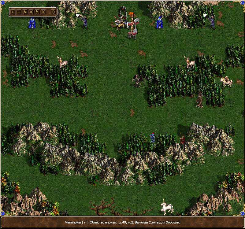 Чемпионы стоят на мирной клетке, и напасть на них нельзя.